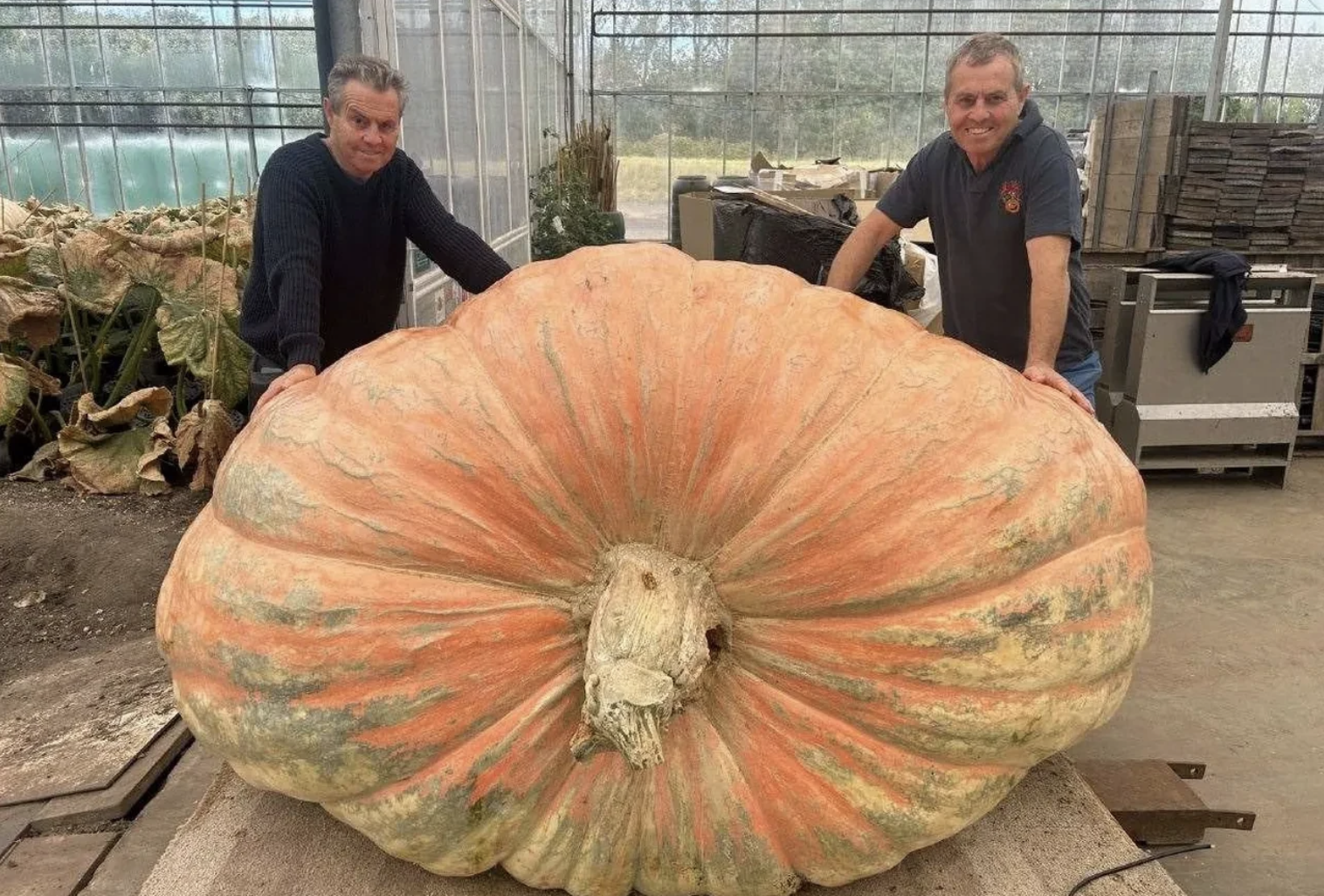 Hampshire’de ikiz kardeşler Ian ve Stuart Paton, 1.278 kilogram ağırlığı ve 6,5 metre çevresi ile dünyanın en büyük ve en ağır balkabağını yetiştirerek Guinness Dünya Rekorları’na girmeyi başardı. Dev balkabağı, vinç yardımıyla yarışma alanına taşındı.