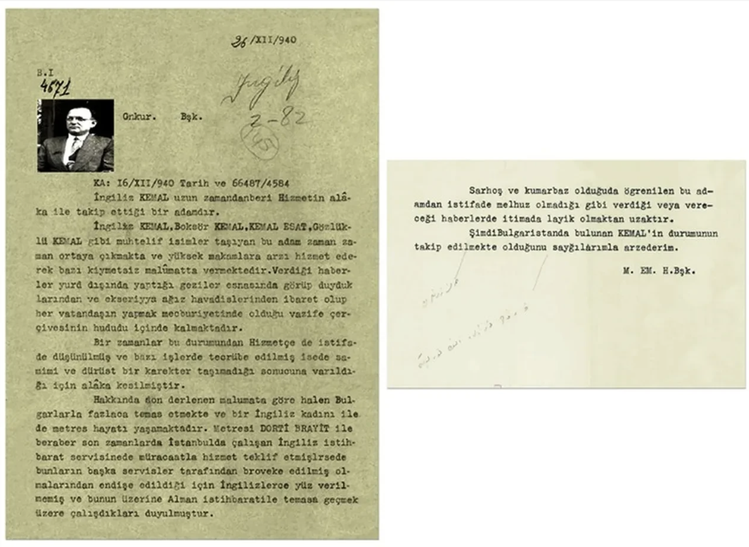 Milli İstihbarat Teşkilatı’nın (MİT) resmi sitesi üzerindeki “Özel Koleksiyon” bölümü altında yer alan belgeler kısmına yeni bir istihbarat raporu eklendi. 26 Aralık 1940 tarihli bu belge, Türk milli mücadelesinin önemli istihbaratçılarından, romanlara ve filmlere konu olmuş Ahmet Esat Tomruk, yani “İngiliz Kemal” hakkında olumsuz görüşler içeriyor.